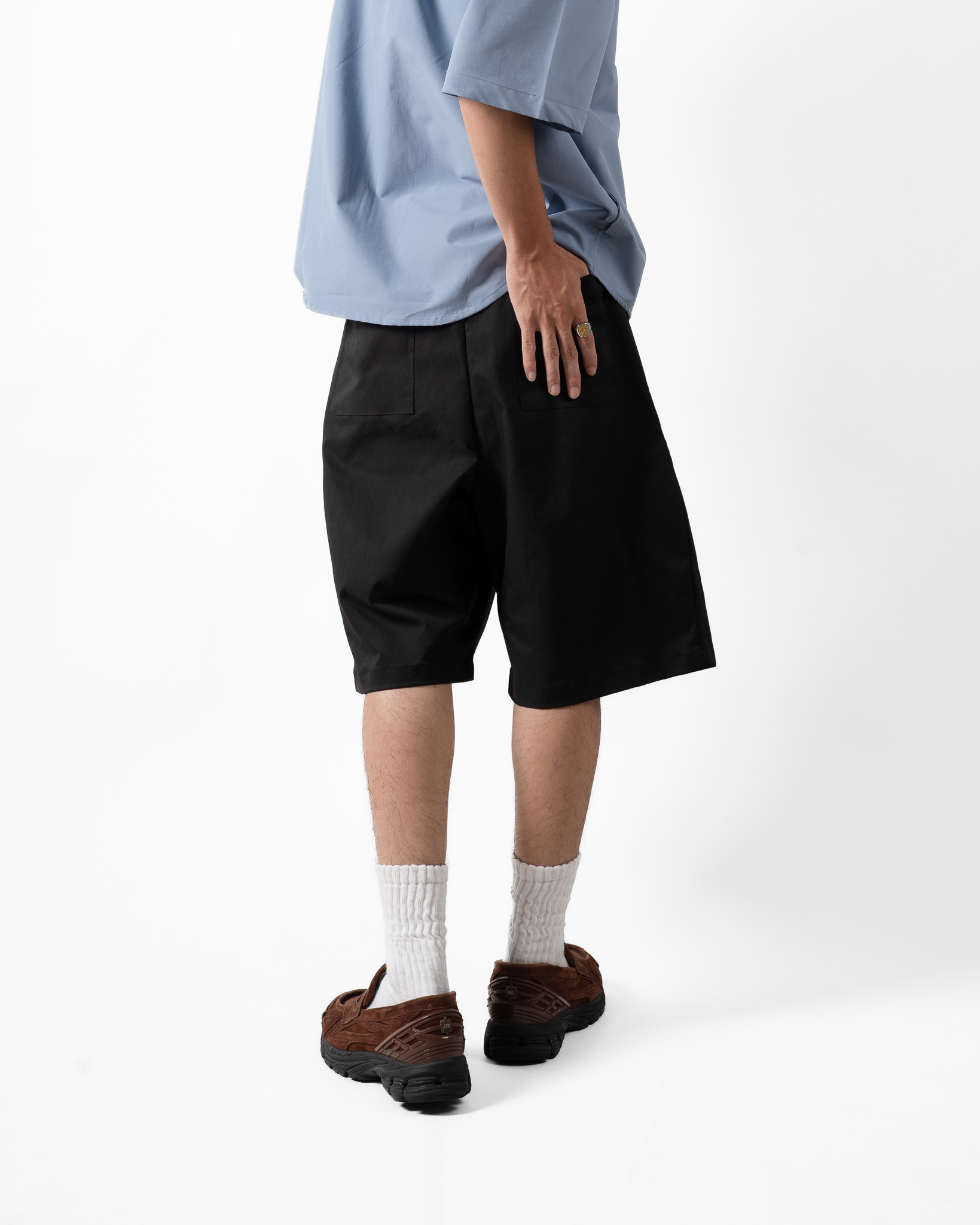 寬鬆 5 分長度,既能保持清爽涼感,又能維持正式感,無論搭襯衫、Tee 或背心都能輕鬆駕馭,是夏季必備的百搭短褲。
