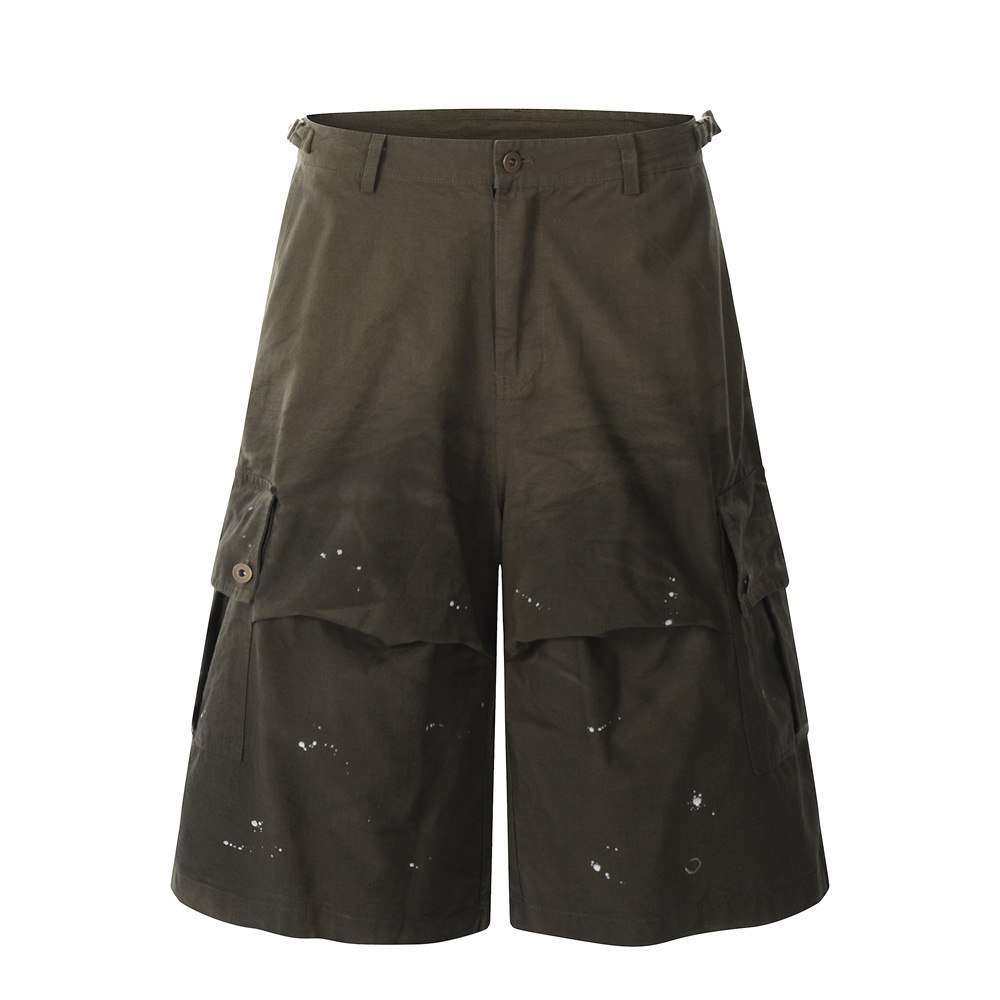 - 商品名稱|打褶潑墨工裝七分軍褲
