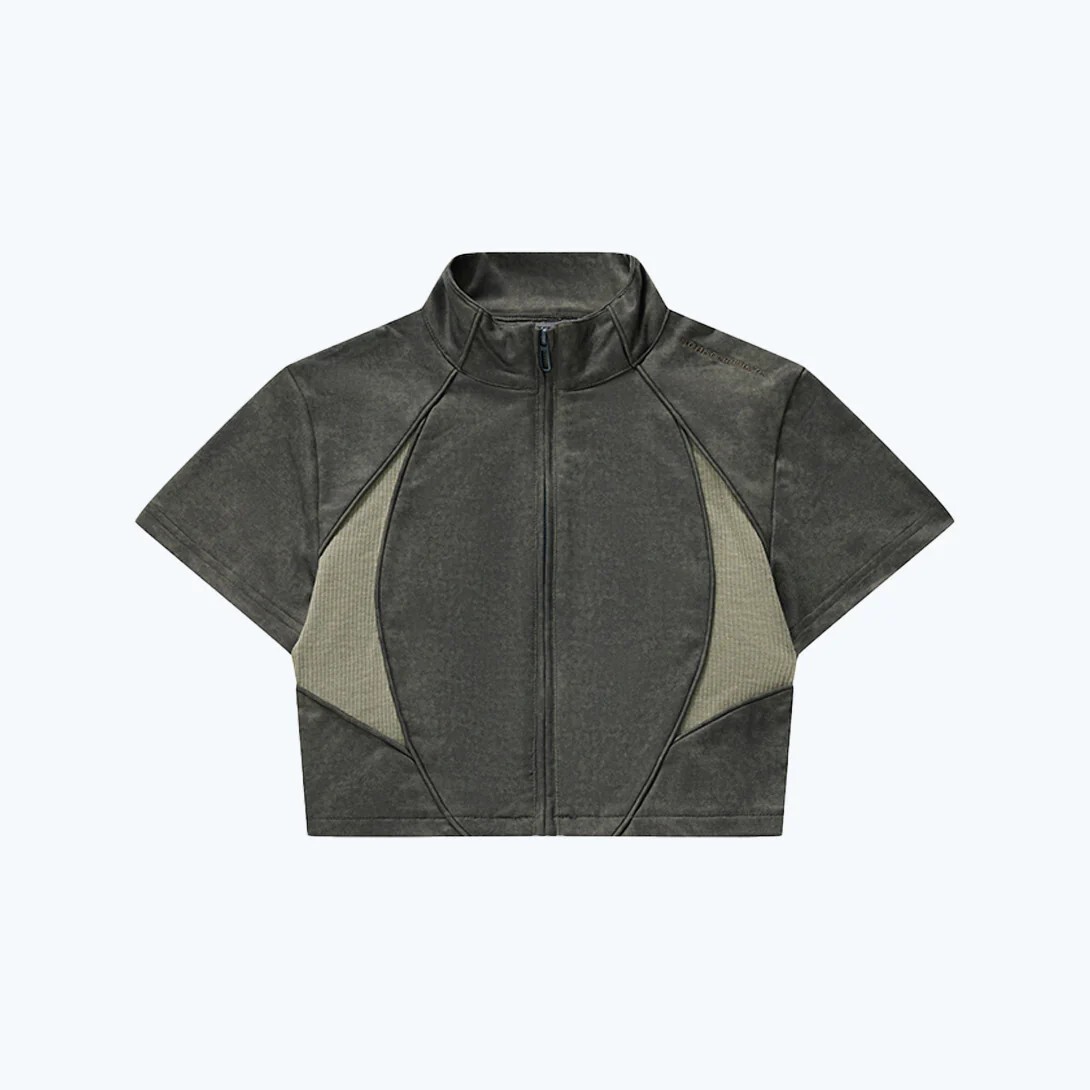 - 商品名稱|Washed Patch Ribbed Zip Top