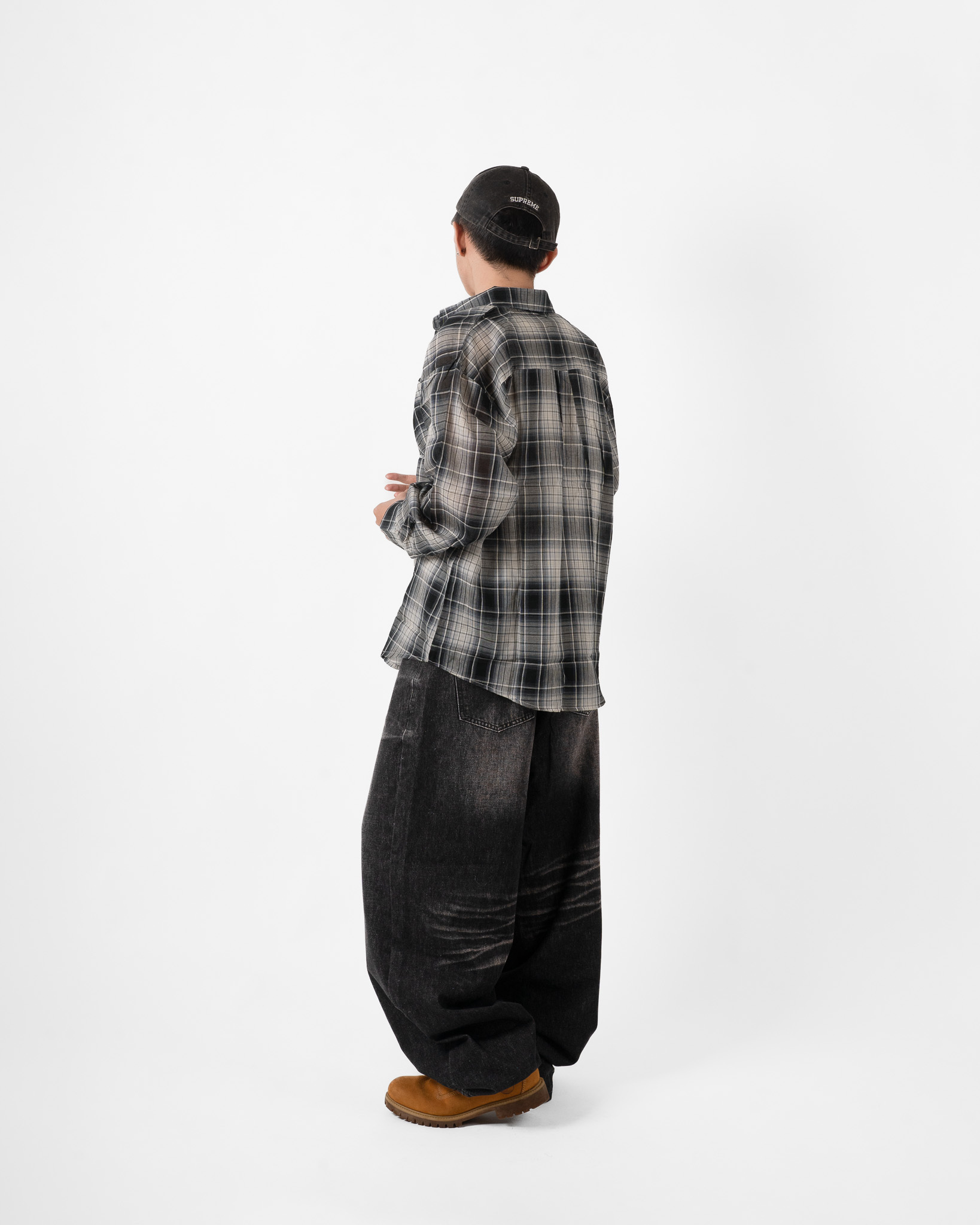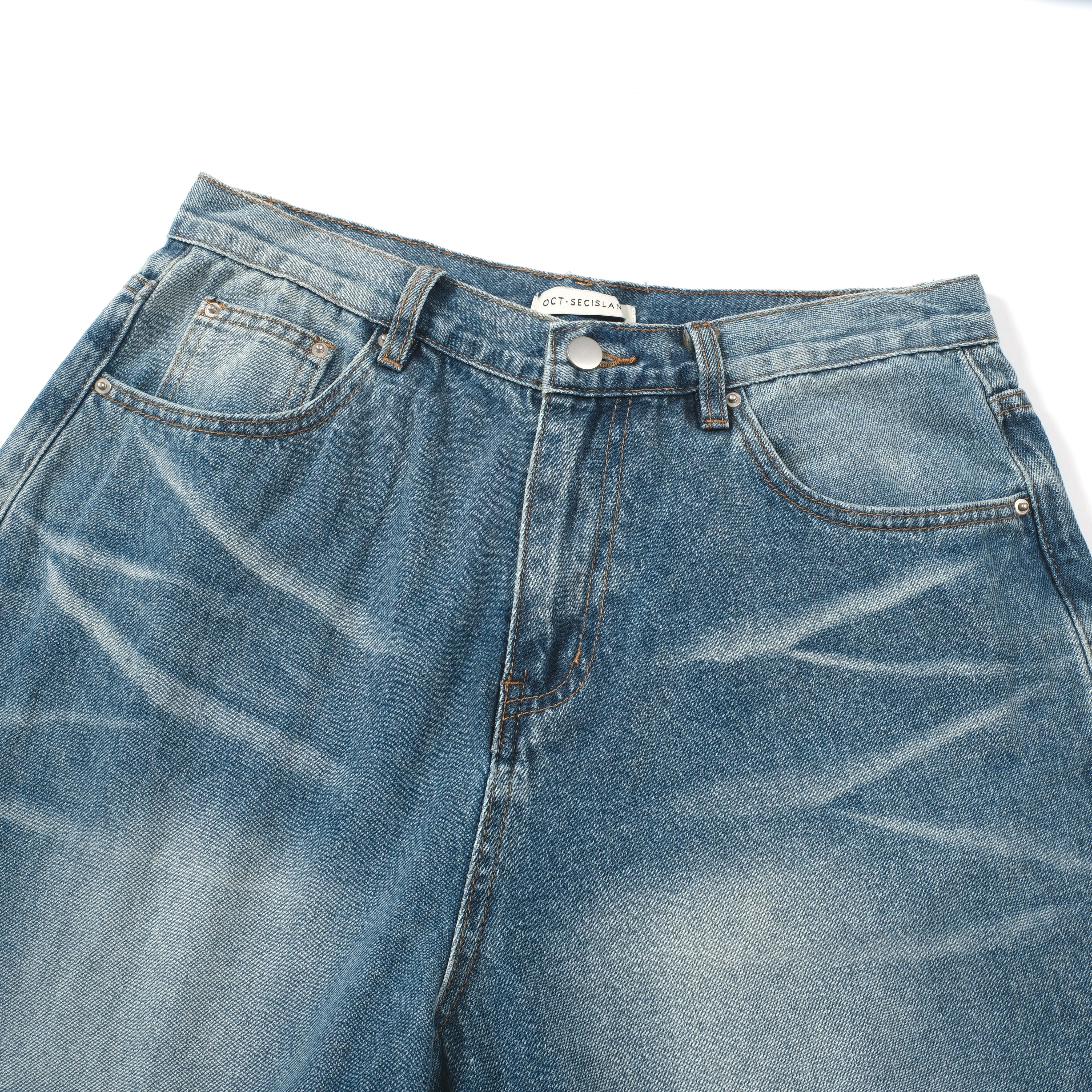 這款寬版牛仔褲採用特殊水洗面料,打造自然做舊與貓鬚設計,復古感十足。寬版落地剪裁穿起來俐落有型,還有四種百搭色系任你選,無論日常或出遊都輕鬆駕馭。