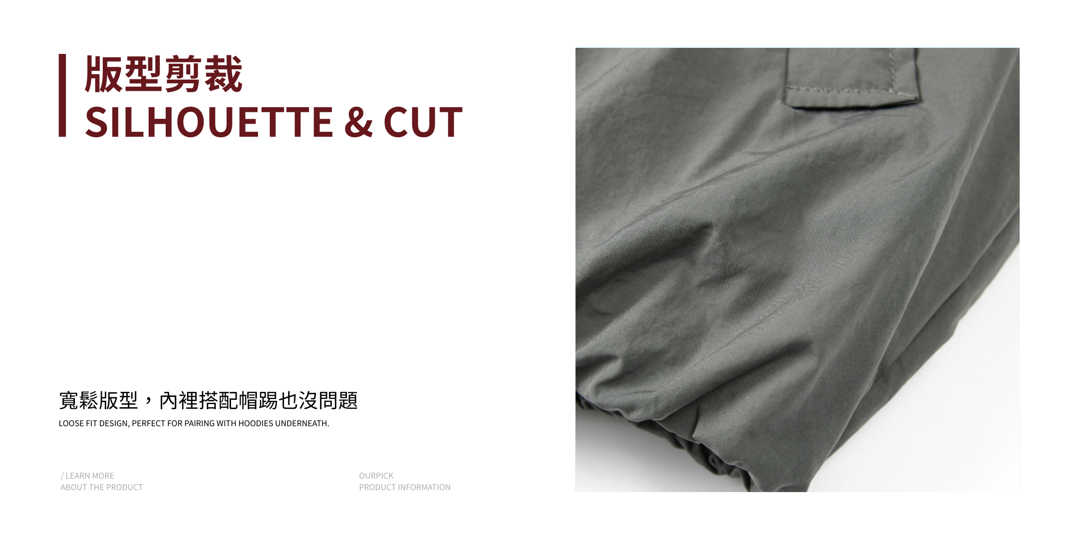 - 寬鬆版型,內裡搭配帽踢也沒問題